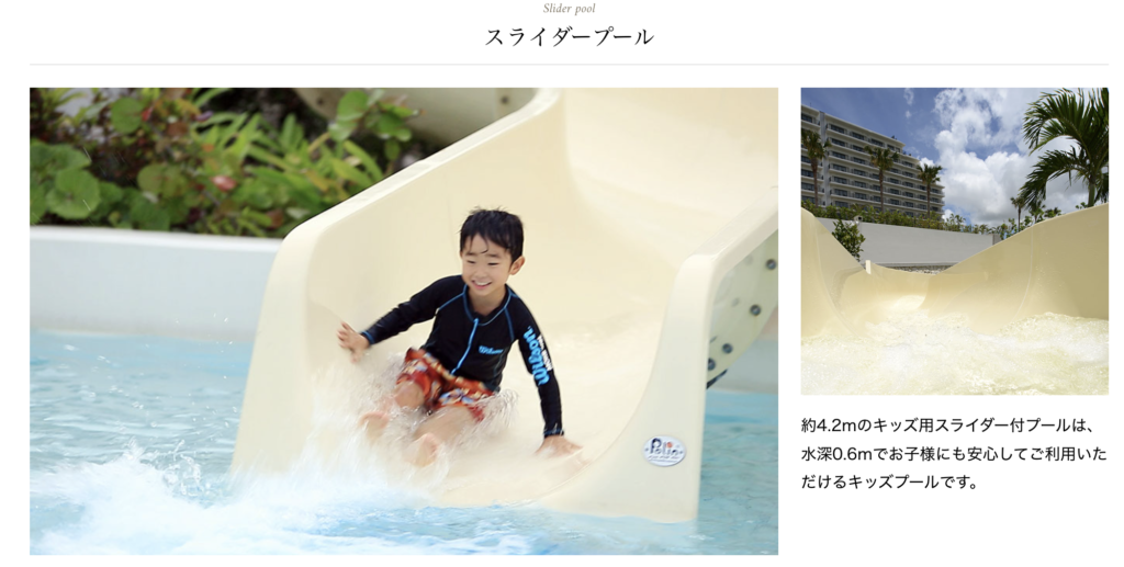 - 屋外プールに4歳の息子が遊べるスライダーがある